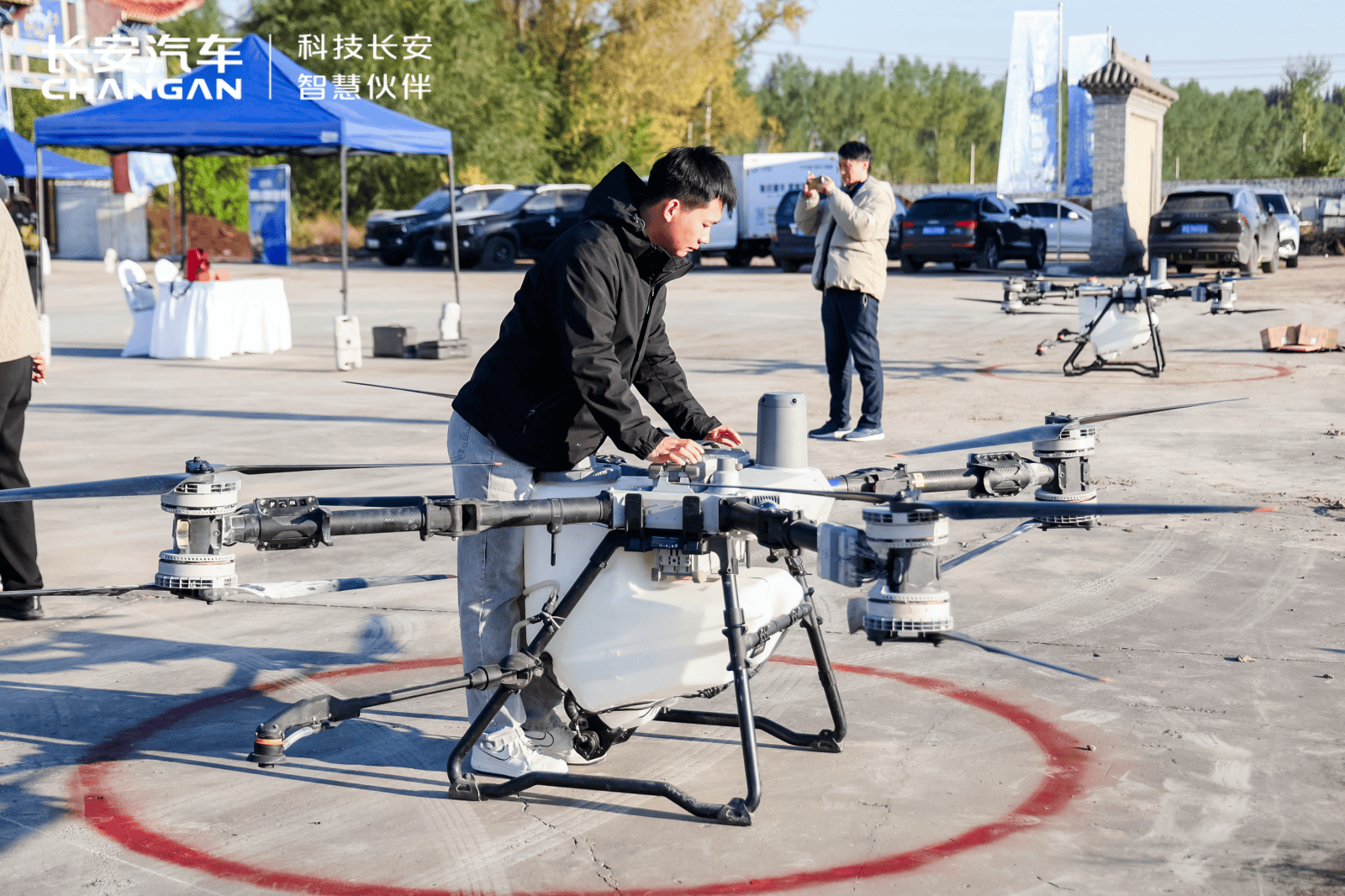 现场长安猎手深度链接所有作业选手,通过现场展示体现无人机在外工作因电池耗尽迫降,只需从容地将充电连接至长安K50的对外放电接口,瞬间快速为无人机电池补充能量。当其他人被迫中止飞行、焦急等待时,无人机工作却能在长安K50的庇护下无缝衔接。完美契合了现代农用无人机团队供电等全方位需求。